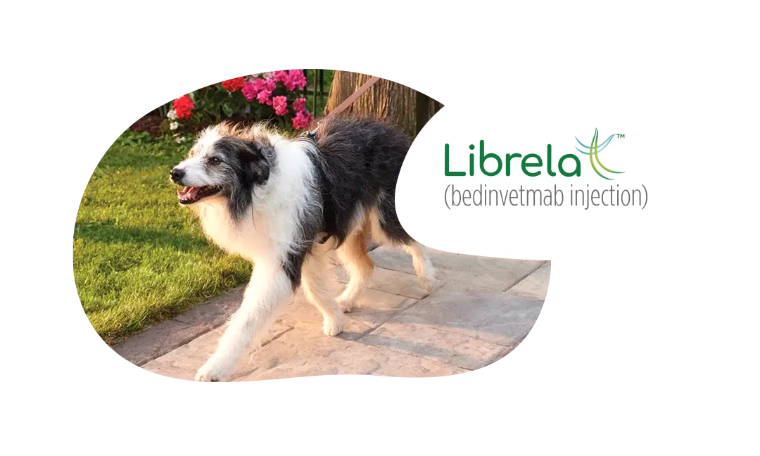 IMPORTANT SAFETY INFORMATION: Librela is for use in dogs only. Women who are pregnant, trying to conceive or breastfeeding should take extreme care to avoid self-injection. Hypersensitivity reactions, including anaphylaxis, could potentially occur with self-injection. Librela should not be used in breeding, pregnant, or lactating dogs. Librela should not be administered to dogs with known hypersensitivity to bedinvetmab. Adverse events reported post-approval include ataxia (lack of balance/coordination), anorexia (loss of appetite), lethargy (tiredness), emesis (vomiting), and polydipsia (increased drinking). The most common adverse events reported in a clinical study were urinary tract infections, bacterial skin infections and dermatitis (skin irritation/inflammation). See full Prescribing Information.